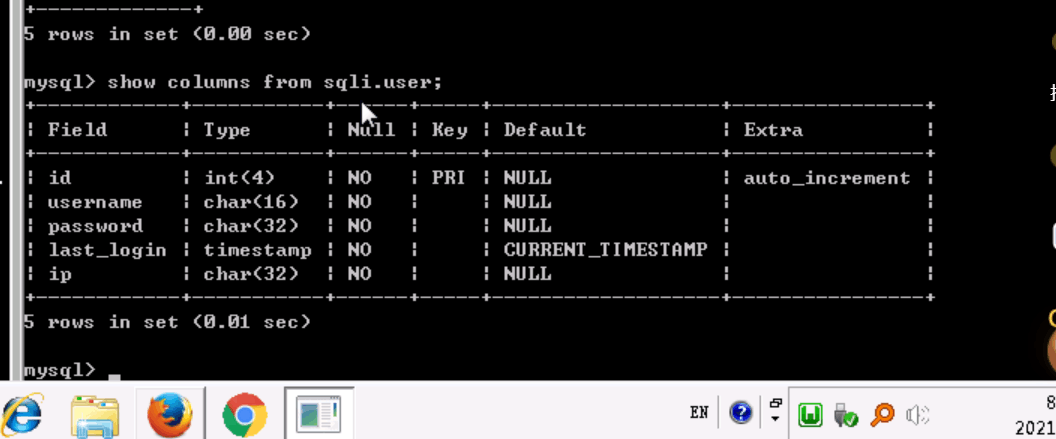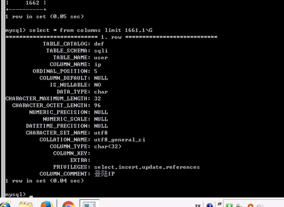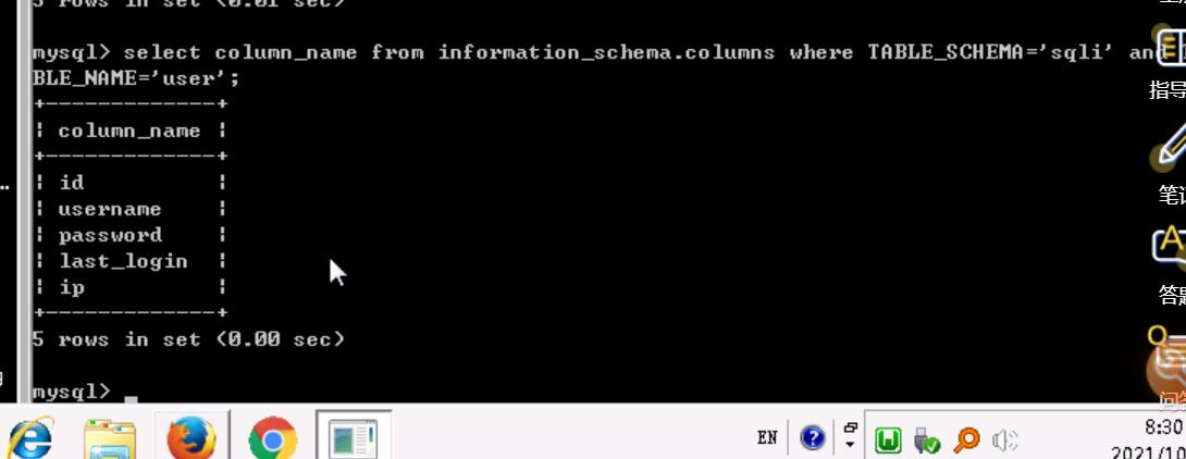 select column_name from information_schema.columns where TABLE_SCHEMA='sqli' and TABLE_NAME='user';
