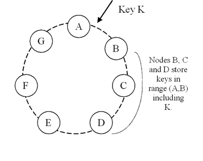这对基本的一致性哈希算法提出了一些挑战。首先,每个环上的任意位置的节点分配导致非均匀的数据和负荷分布。二,基本算法无视于节点的性能的异质性。为了解决这些问题,Dynamo采用了一致的哈希(类似于[10,20]中使用的)的变体:每个节点被分配到环多点而不是映射到环上的一个单点。为此,Dynamo使用了“虚拟节点”的概念。系统中一个虚拟节点看起来像单个节点,但每个节点可对多个虚拟节点负责。实际上,当一个新的节点添加到系统中,它被分配环上的多个位置(以下简称“标记” Token )。对Dynamo的划分方案进一步细化在第6部分讨论。