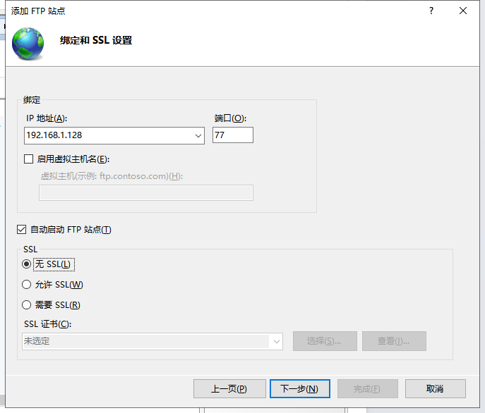 选取本机的IP地址,SSL如果不涉密可以选无 (设置端口7开头好像不行,好像就得8开头的)