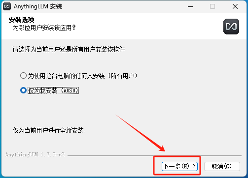 13.这里将anythingllm放进去,安装好之后 ,在windows命令行 cmd 输入: