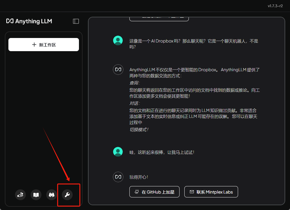 因为只能在这个小窗口问问题,所以需要用到AnythingLLM