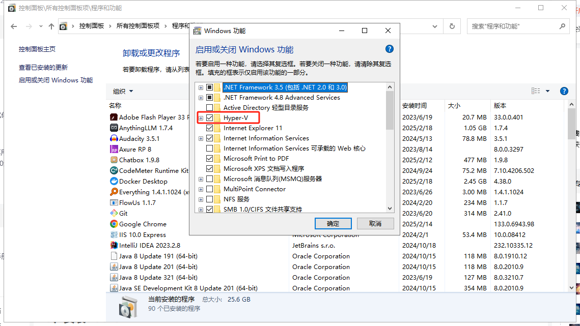 1.首先需要在自己电脑上开启windows的Hyper-V虚拟化技术