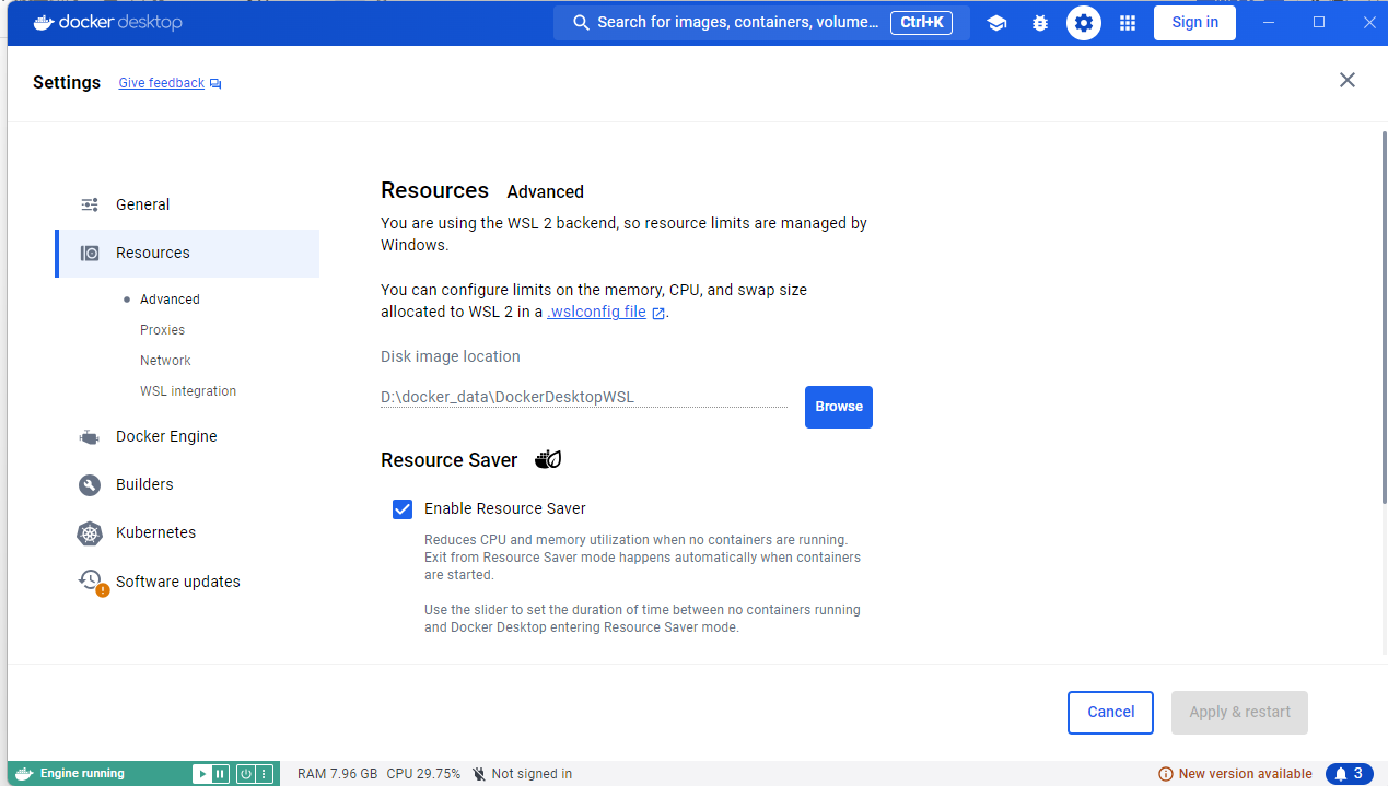 9.设置资源下载位置,默认是在C盘,根据自己需求进行修改。(例如:D:\AI\Docker\data)