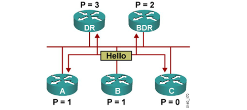 - 选举是利用Hello报文内的ID和Priority(优先级)来确定。优先级大小为0-255(默认值为1,0代表不参加选举)