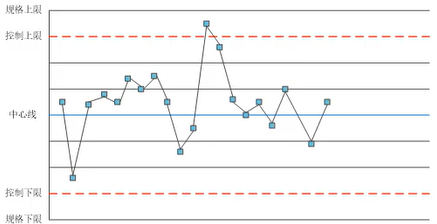 控制图又称为管道图,是以常态分配中三个标准差为理论依据,中心线为平均值,上下控制界限为平均数加减三个标准差的值,以判断过程中是否有问题发生。