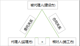 建设工程代理活动中,涉及三方主体(被代理人、代理人、相对人),被代理人与代理人之间是委托合同关系,被代理人与相对人是合同关系,代理人与相对人无任何关系。