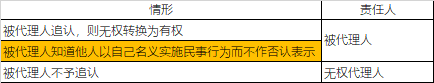(3)表见代理本质上为无权代理,但产生有权的代理后果,由被代理人承担责任,被代理人可以向无权代理人追偿因代理行为而遭受的损失。