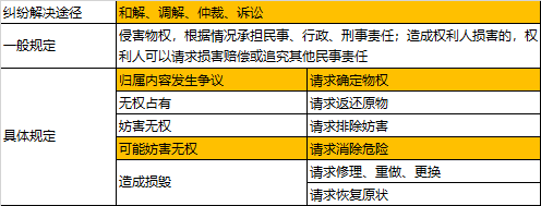 B.侵权责任:停止侵害,排除妨碍,消除危险,返还财产,恢复原状,修理重做更换,消除影响,恢复名誉,赔礼道歉。