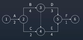 虚箭头既不占用时间,也不消耗资源,只是一种逻辑关系,一般起着工作之间的联系、区分和短路的三个作业。