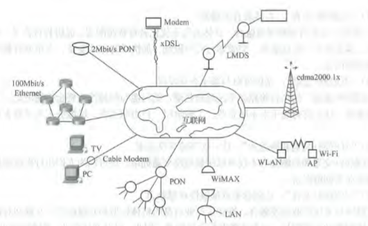 互联网接入方式千变万化,如xDSL、光纤、PON、Cble、FTTx、微被、移动网、VSAT…人类发明的几乎所有通信接入网,都可以被用于接入互联网。