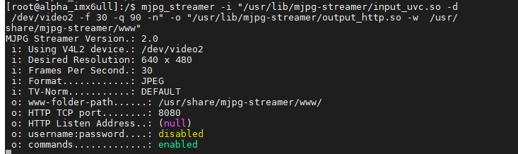mjpg_streamer -i "/usr/lib/mjpg-streamer/input_uvc.so -d /dev/video1 -f 30 -q 90 -n" -o "/usr/lib/mjpg-streamer/output_http.so -w /usr/share/mjpg-streamer/www"