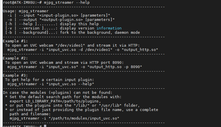 挂载buildroot系统,进入文件系统后使用mjpg_streamer --help