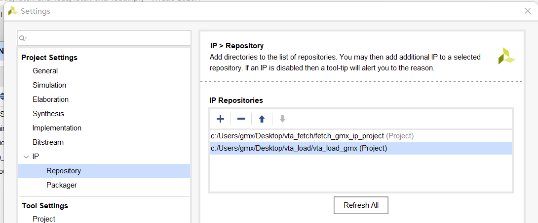 2. 随后添加ip 仓库的路径,准备将待测试模块导入(此处待测试模块被封装成了ip,您也可以将rtl代码加入到block design中)。