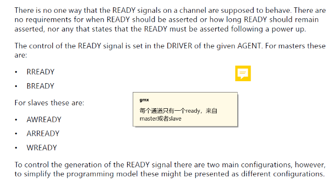 Ready信号表明该通道的数据接收方已经准备好接受数据了,该部分的具体内容在pg267的85页。