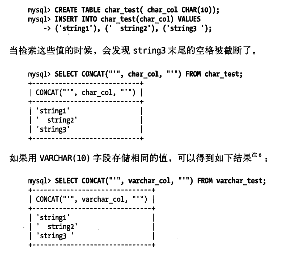 如果字符串长度不够,会在后面添加空格查询时再去掉空格(这是在MySql服务层进行处理的,与存储引擎无关)