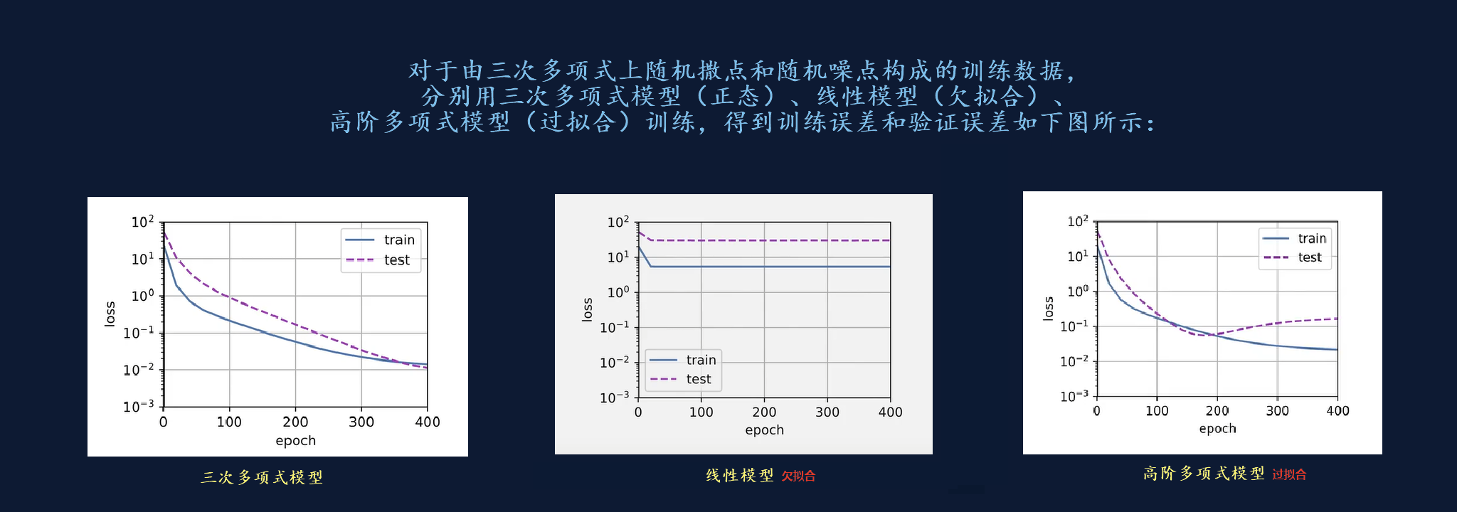 欠拟合:训练误差和验证误差都很大,模型容量小于数据复杂度。
