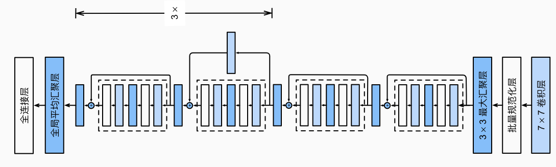 残差连接是ResNet的独特操作。在神经网络层数很深时,参数可能难以学习(网络退化),残差连接通过将之前浅层训练的结果跳跃地传入深层,并将训练函数减去连接的值。这样在最坏的情况下,如果被越过的部分已经难以学习,那么无非就是这一部分没有贡献,而连接的值继续前向传播,不会影响后面的运算。这样,神经网络可以做得很深而无需担心训练困难的问题。