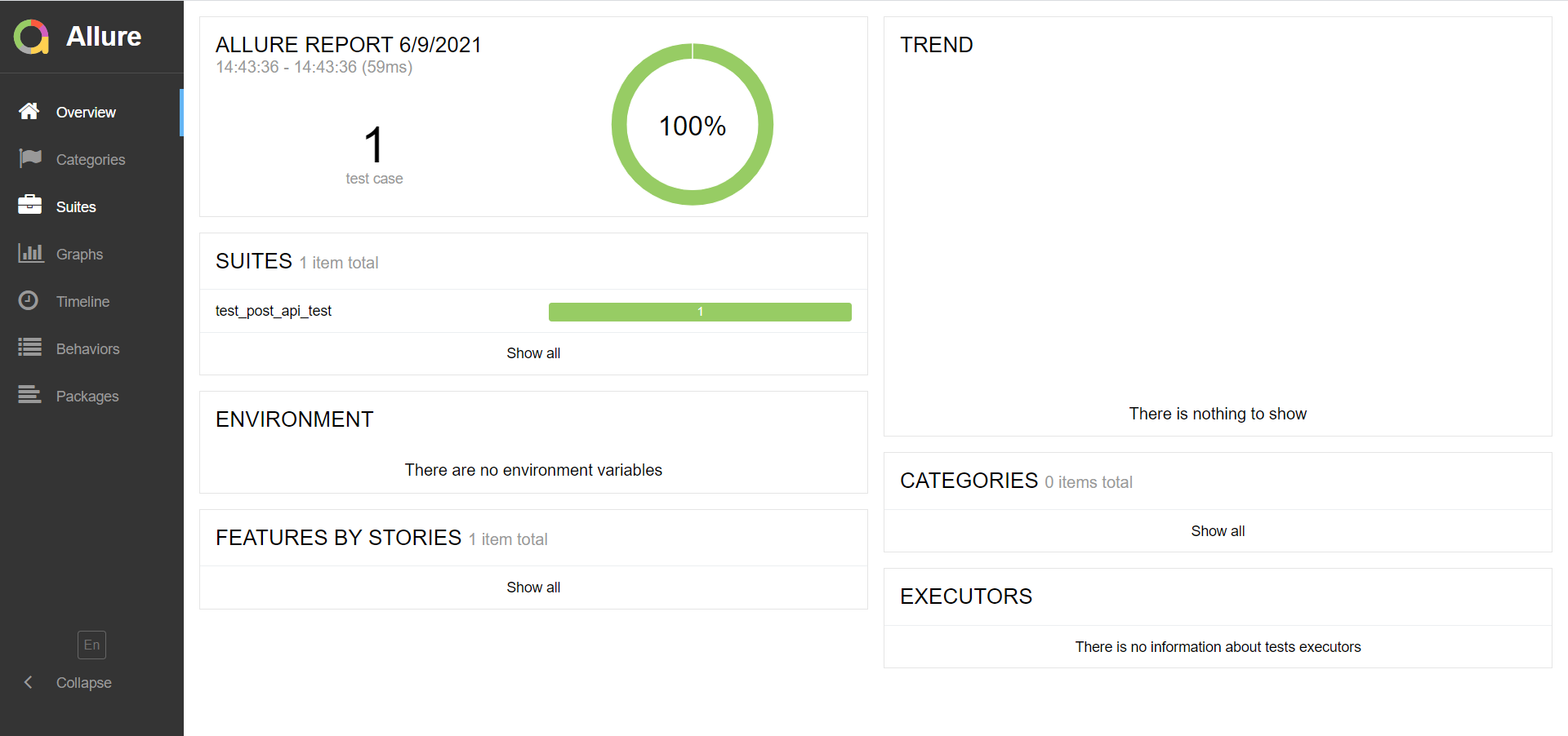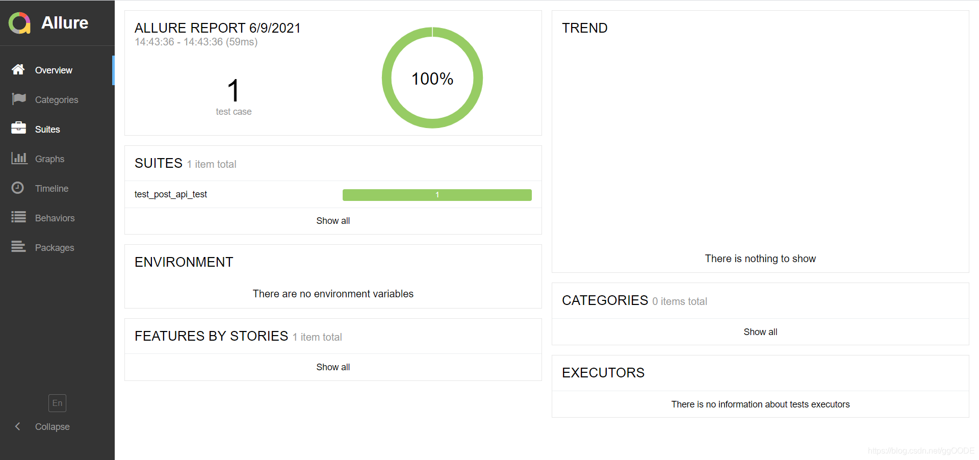 $ hrun --alluredir allure-results --clean-alluredir # 当用例格式为py文件时,可以用“pytest”替换“hrun”,作用相同 --alluredir:生成allure报告的原始数据 allure-results:原始数据的保存位置 --clean-alluredir:清除allure-results历史数据