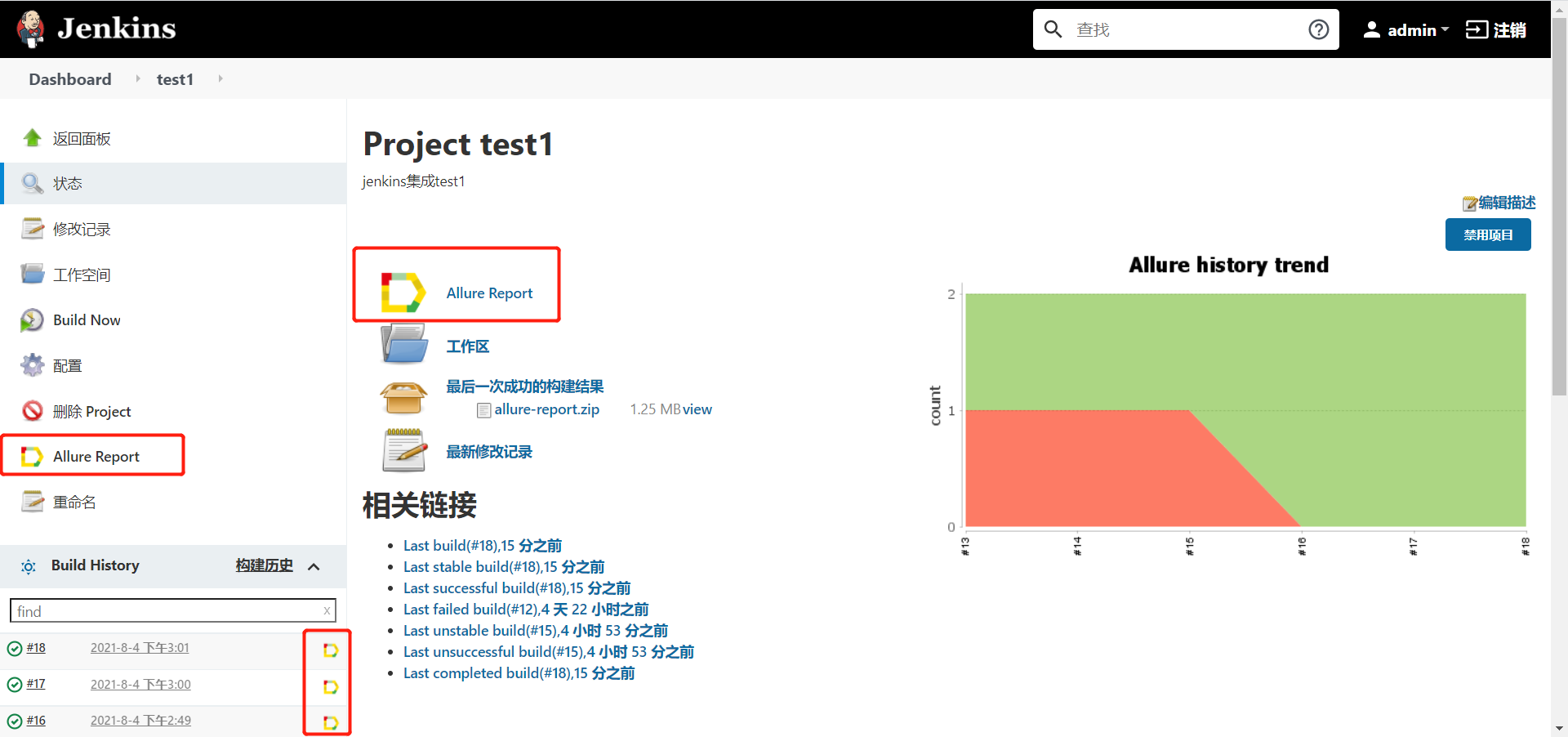 7、生成成功的情况如下:会有一个Allure Report的图标,点击可以访问