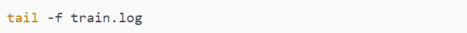 - 检查训练日志 训练过程的输出将被写入到 train.log,您可以使用以下命令动态查看日志。