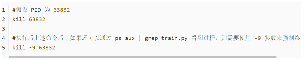 这将列出所有包含 train.py 的进程,查找相应的进程ID(通常是列出的第二列)。