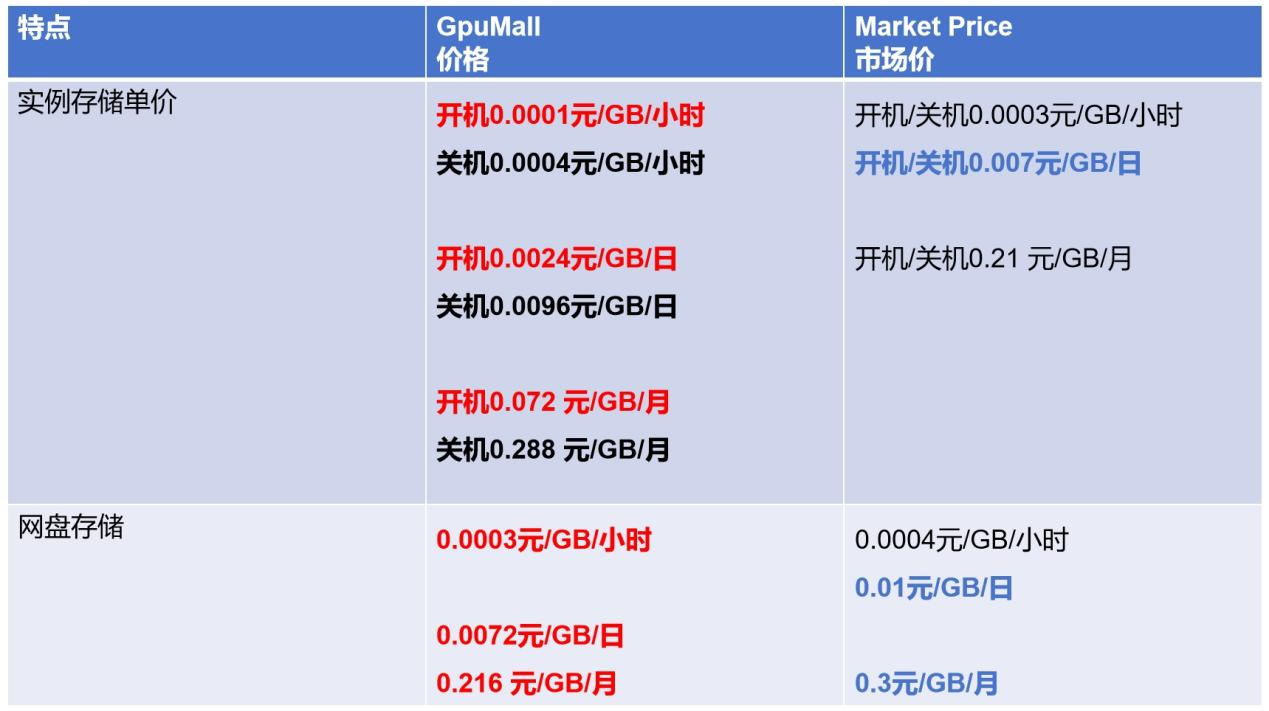 首先要提到这个平台超强的性价比!!! 支持包年包月或按量计费的灵活计价模式!在GpuMall平台实例存储不仅可以永久保存,还只收取存储费用,且费用极低,算下来也就2分/G!尤其是网盘存储的价格真是超级香!500GB数据网盘存储单日收费仅需3.6元/GB/日,用的越多,越划算!