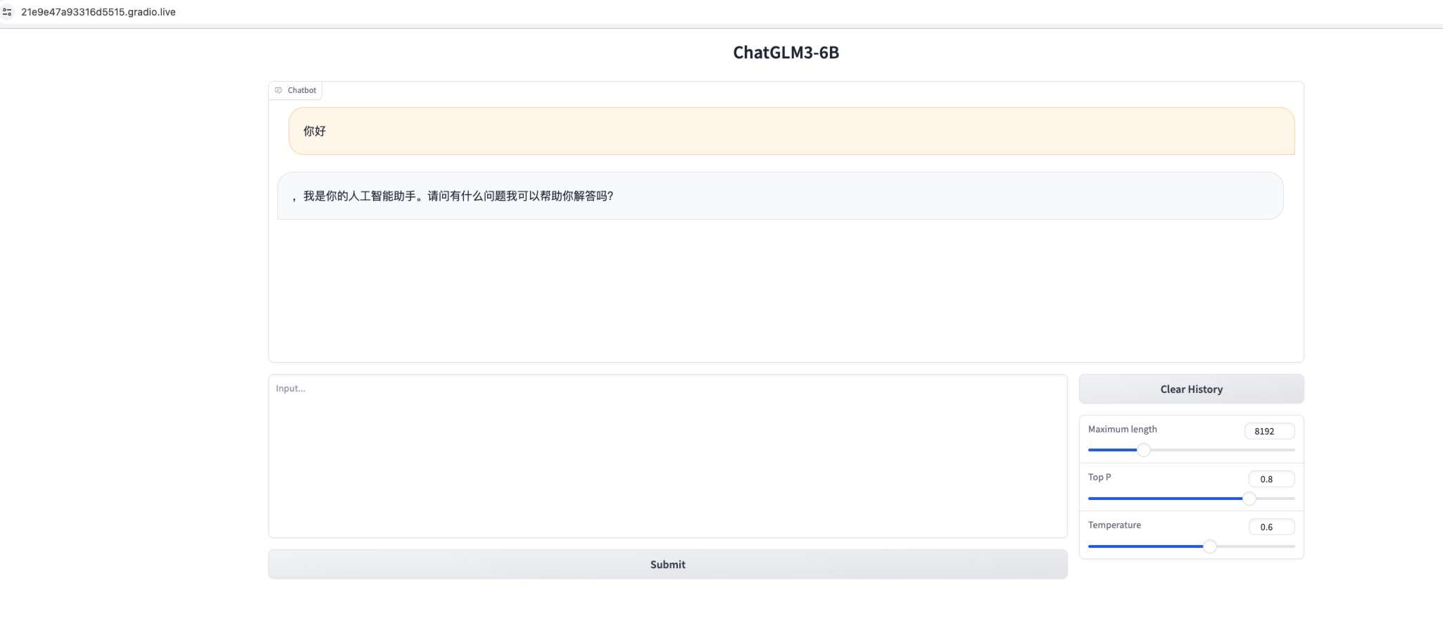 方式一): Web 网页版对话,通过 Gradio 所生成的地址进行公网访问(国内网络访问可能稍慢),监听8501端口