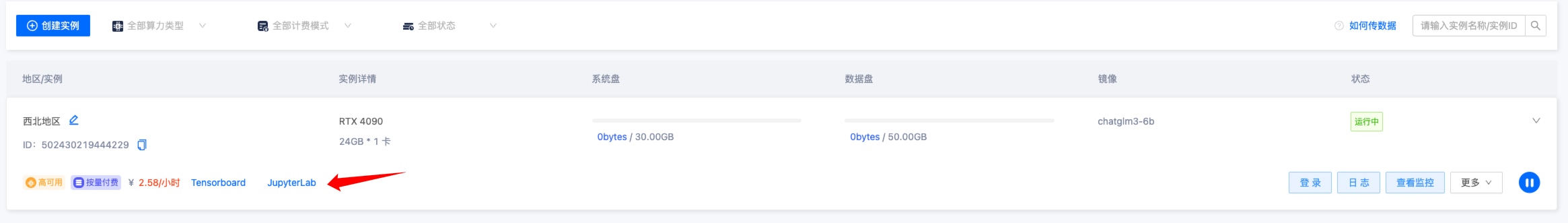 选择完成后创建实例,然后点击 JupyterLab,进入终端。