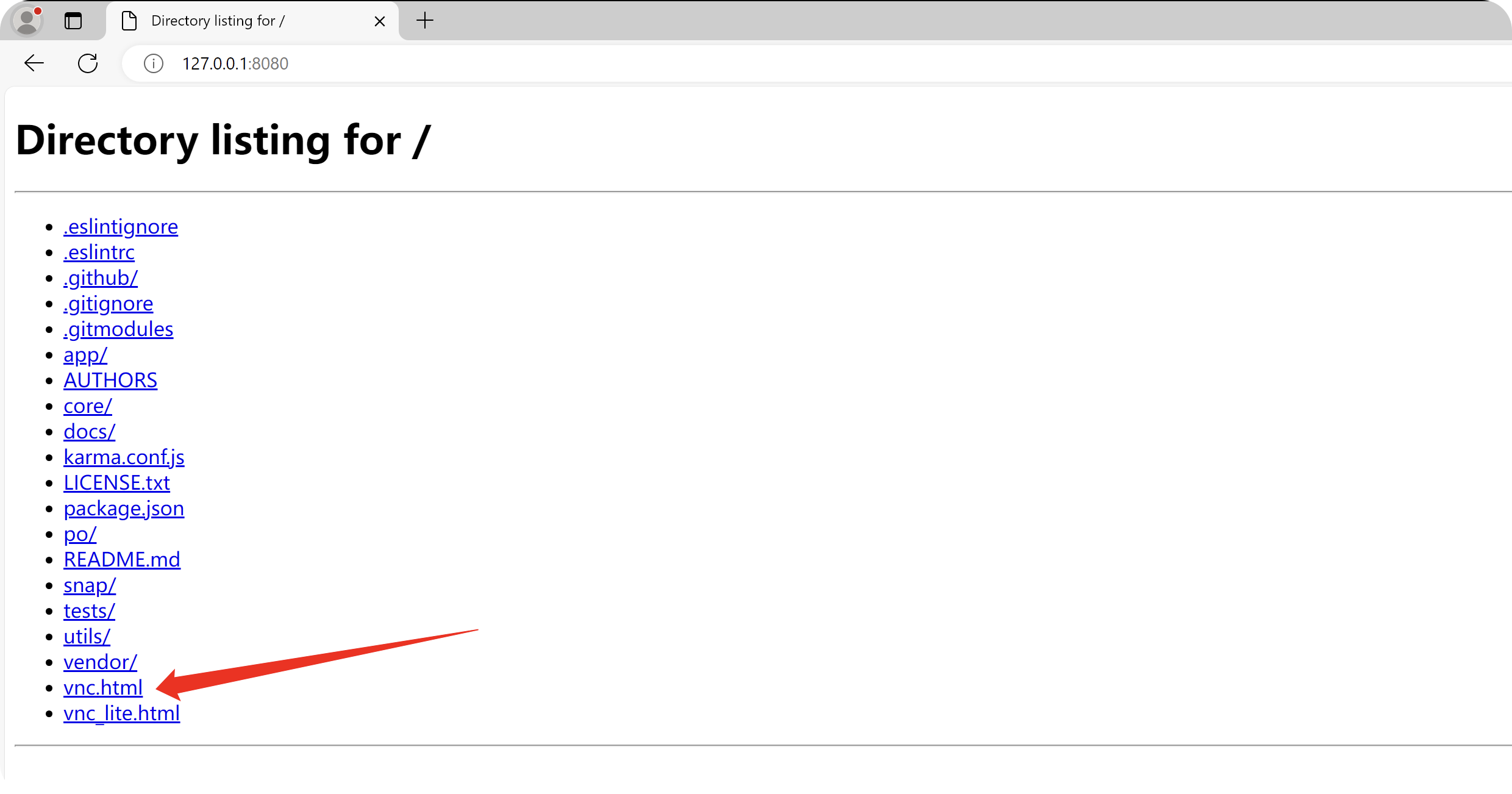 打开本地浏览器访问http://127.0.0.1:8080,然后点击vnc.html