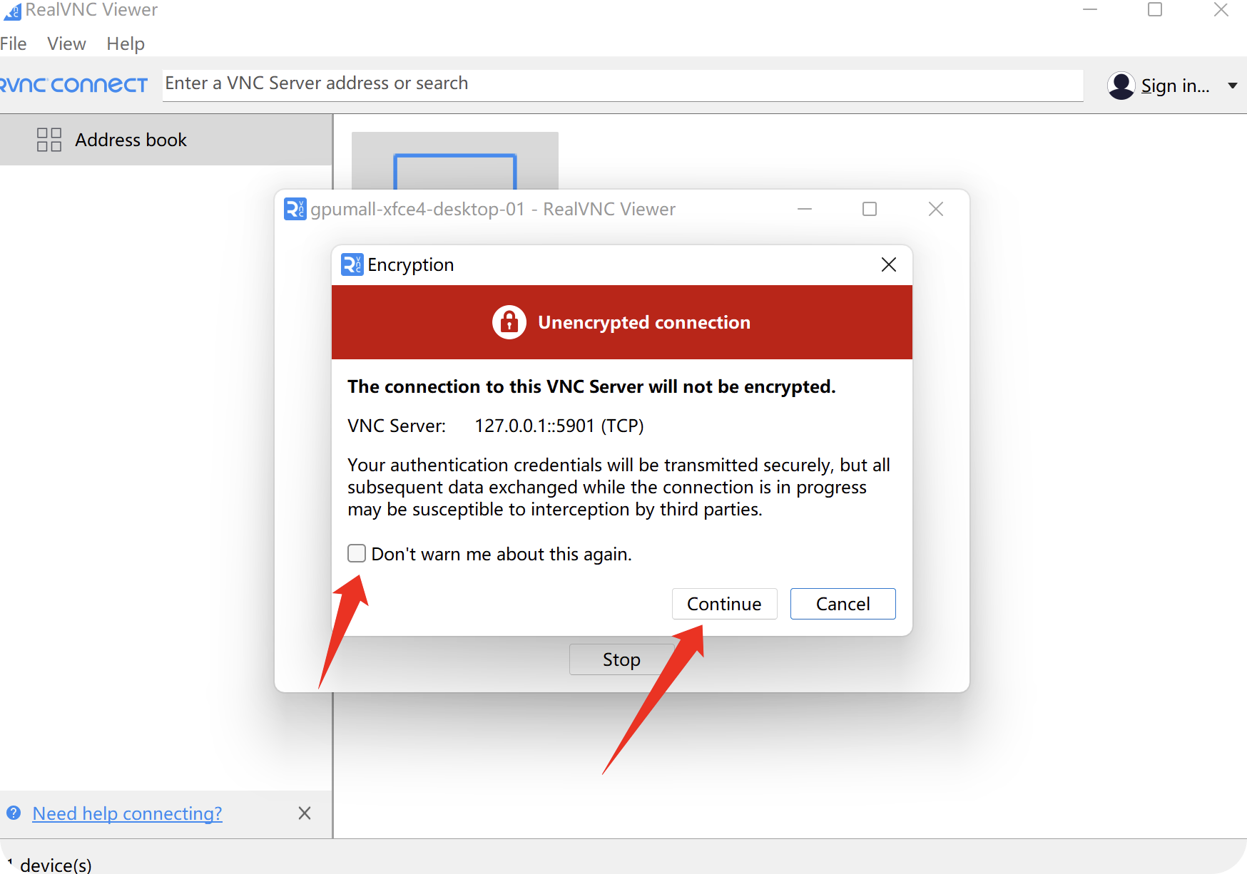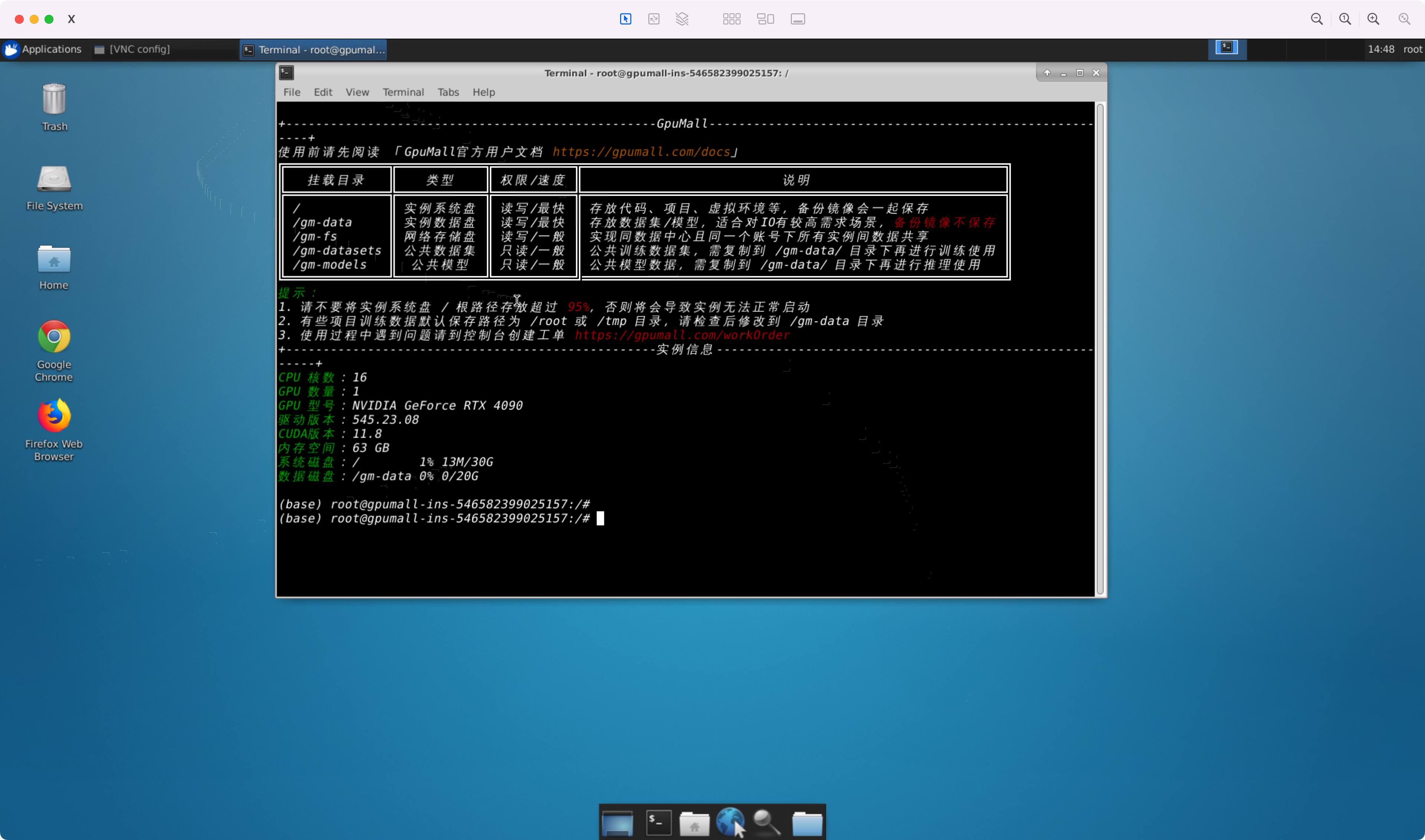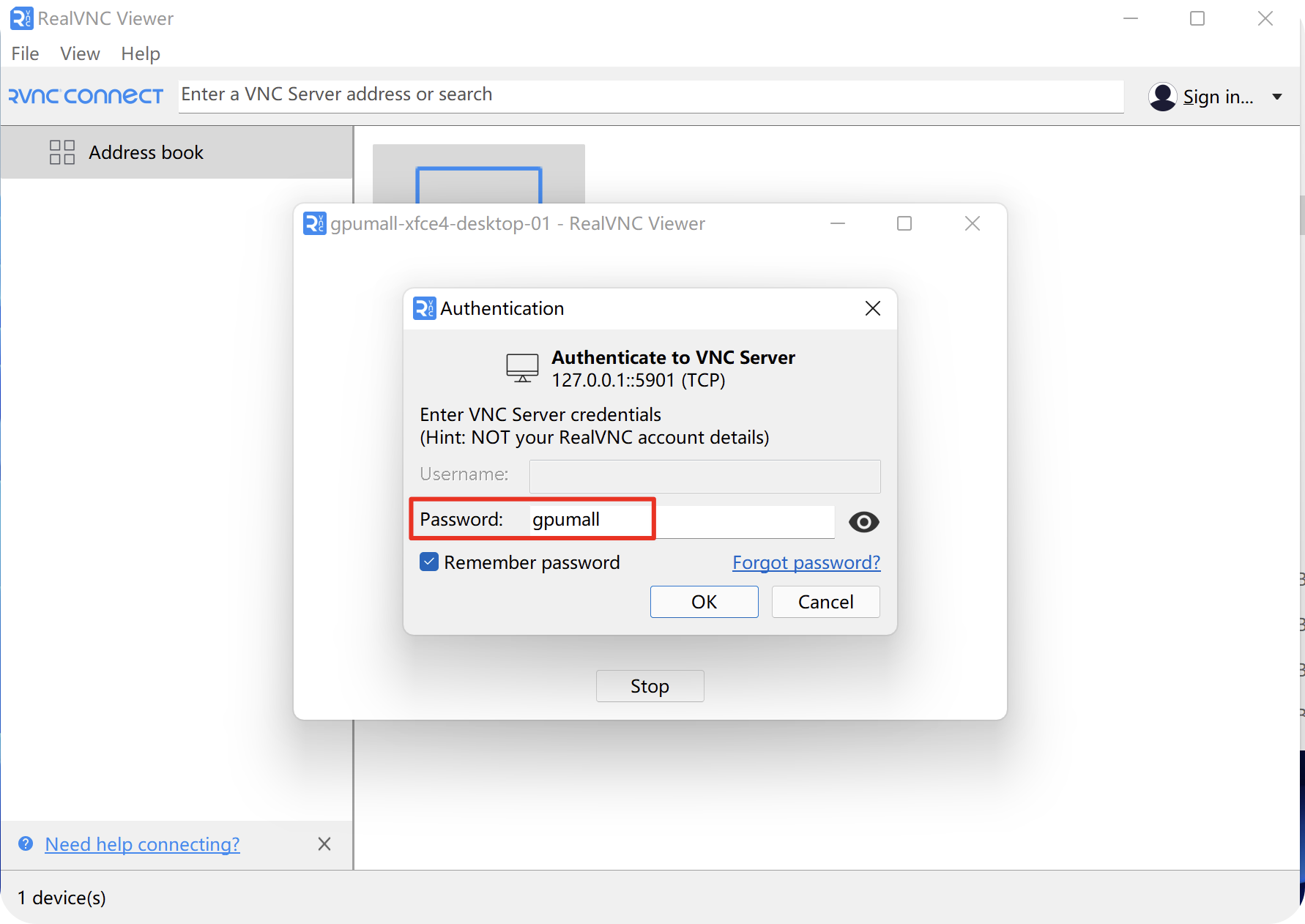 然后点击连接,输入密码gpumall(gpumall为默认的VNC桌面密码)