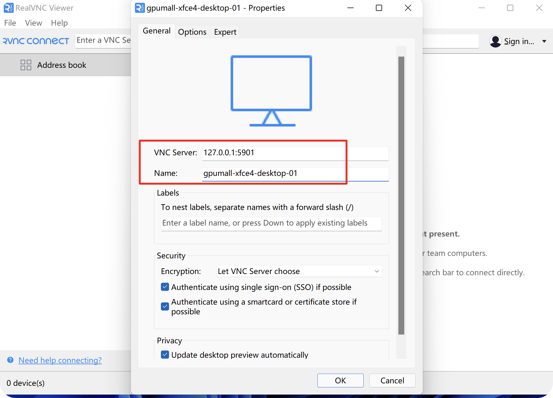 Windows使用realvnc连接实例桌面 relvnc下载地址:https://www.realvnc.com/en/connect/download/vnc/ 下载对应系统版本安装后打开该软件,进行连接配置
