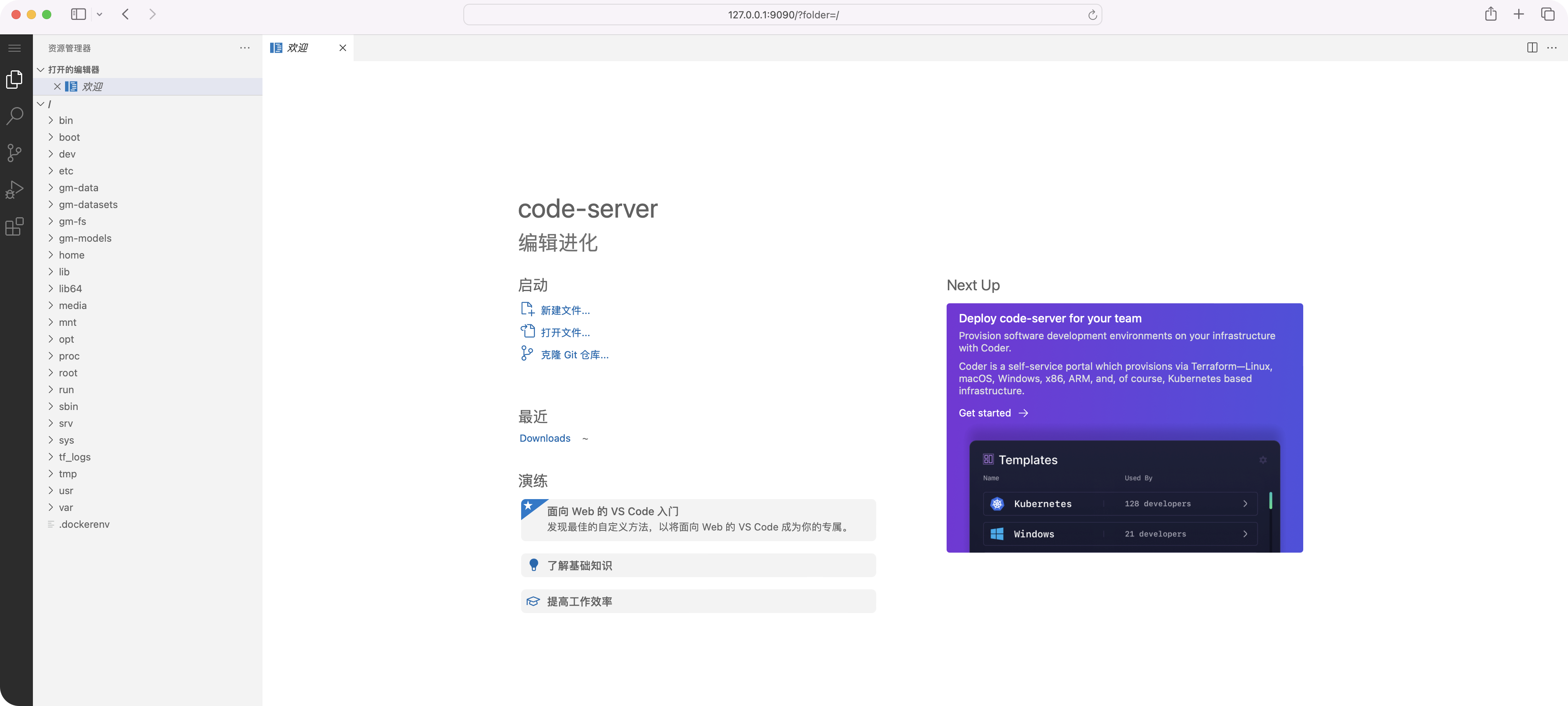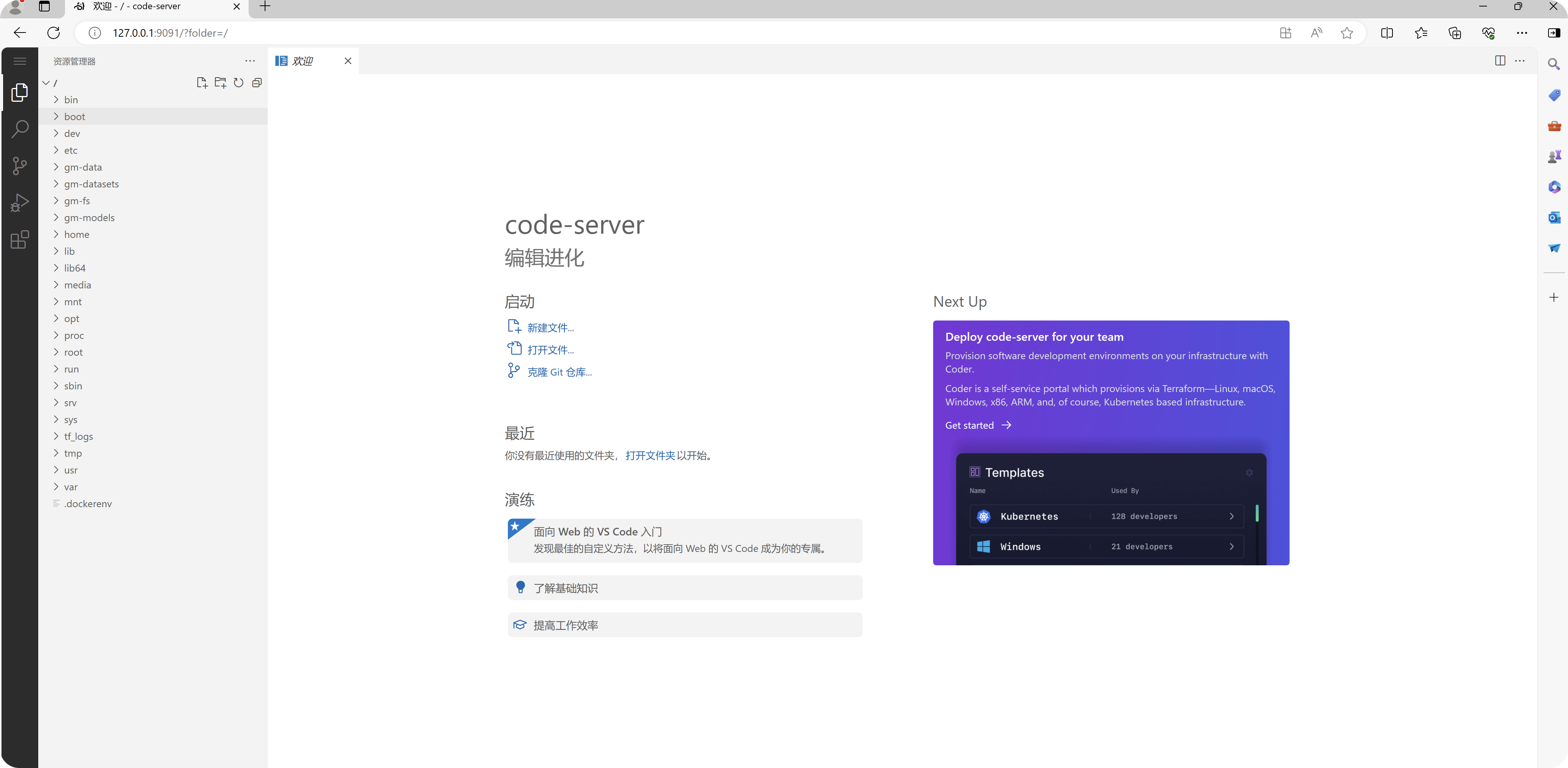 然后使用浏览器访问VsCode-Server,打开本地浏览器访问http://127.0.0.1:9090