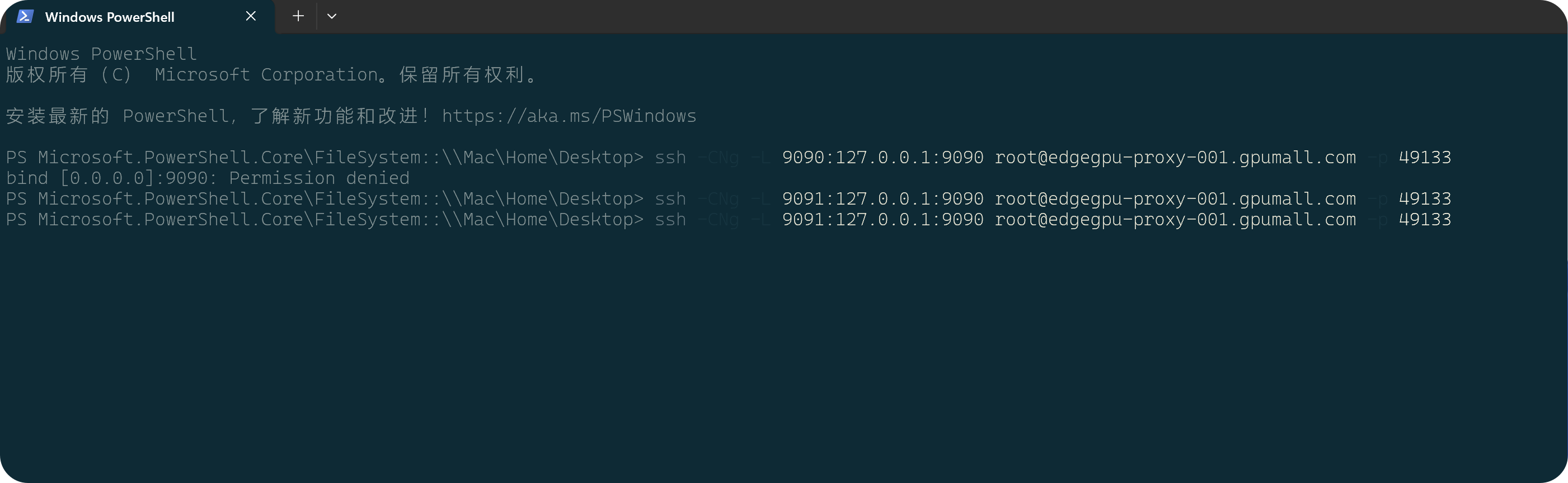 ssh -CNg -L 9090:127.0.0.1:9090 root@edgegpu-proxy-001.gpumall.com -p 49133
