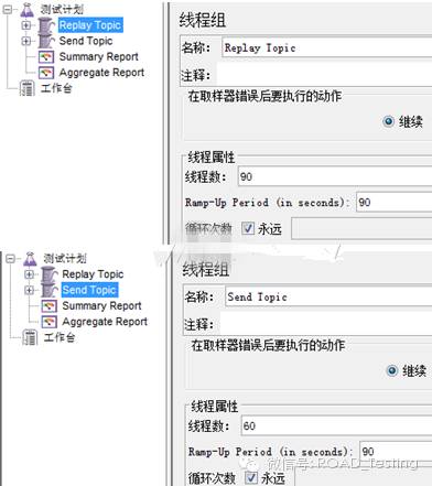 ReplayTopic为回帖线程组,添加90个线程;