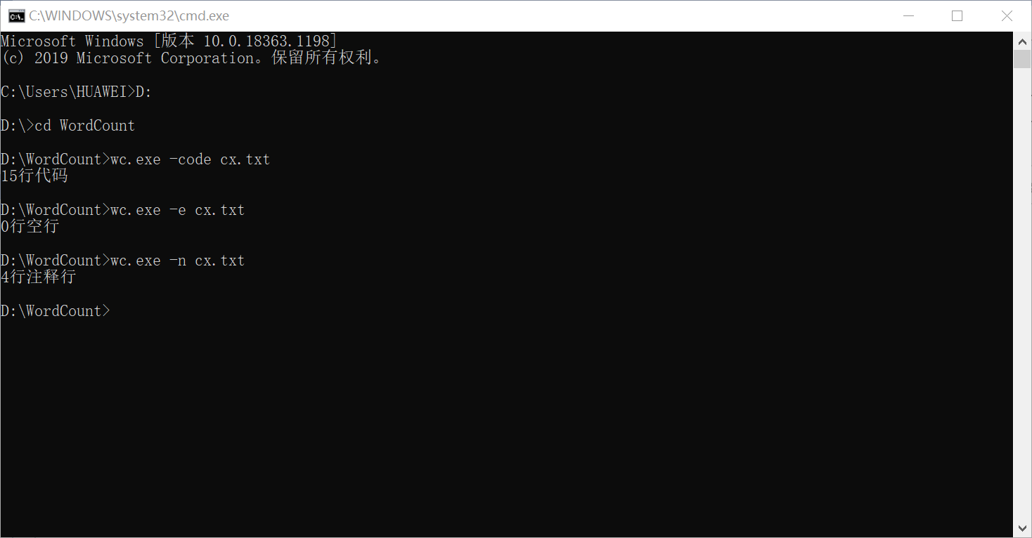 实现一个命令行文本计数统计程序。能正确统计导入的纯英文txt文本中的字符数,单词数,句子数。