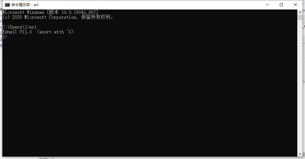 3.2.查看Erlang环境变量是否设置成功,window键+R键,输入cmd,在输入erl,如下图所示看到有版本号就表示设置成功