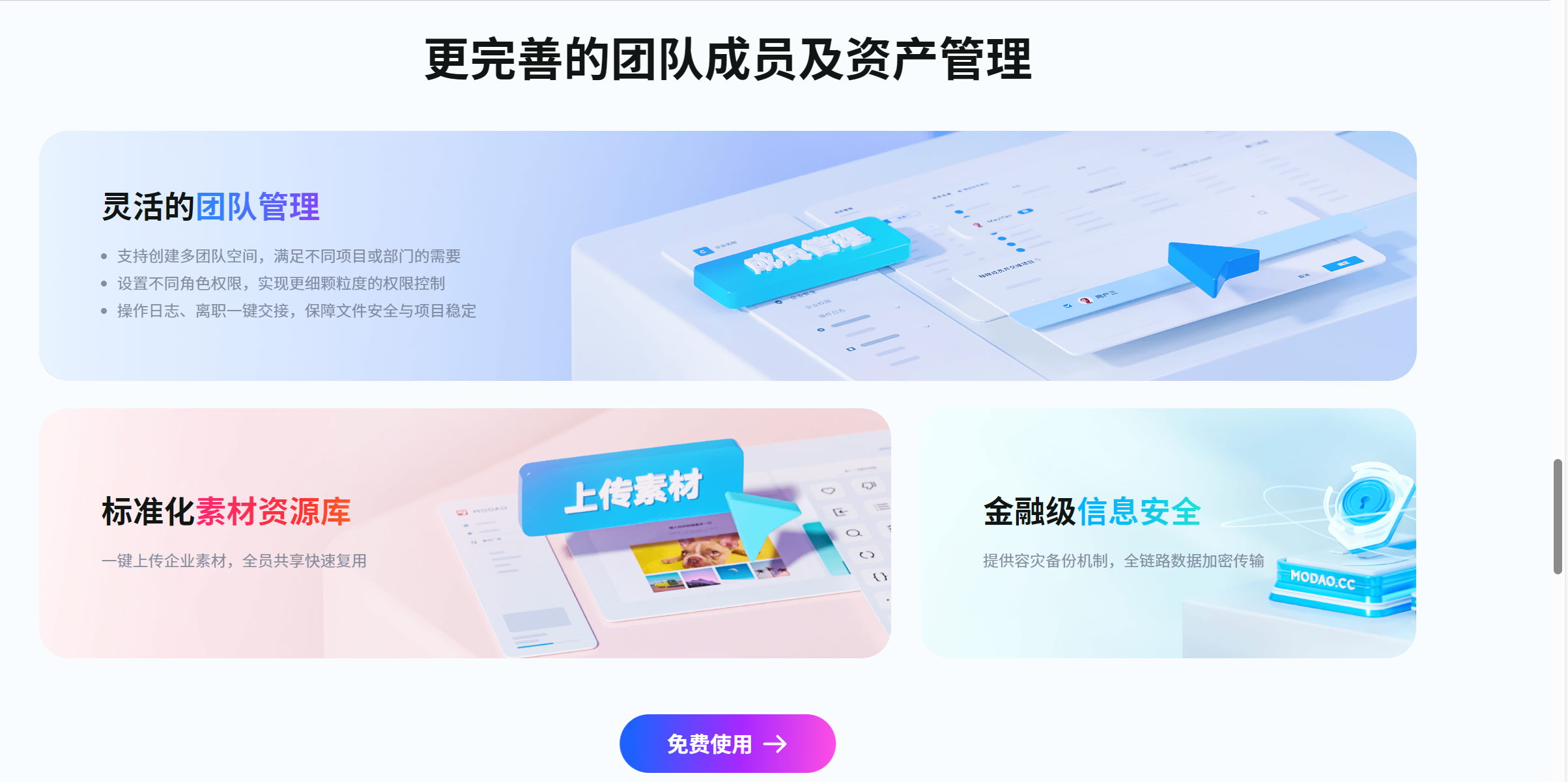 对于企业级用户,数据安全至关重要。墨刀提供金融级数据安全保障,数据传输和存储采用加密技术,防止数据泄露。同时,针对企业空间、文件夹、项目,设置管理员、可编辑、仅查看三种角色,实现多级灵活管理,确保企业数据安全保密,满足企业对数据敏感项目的需求 。