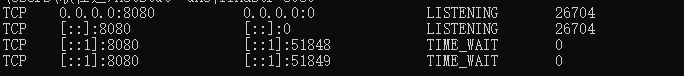 查看tomcat的所使用的端口 netstat -ano|findstr 8080