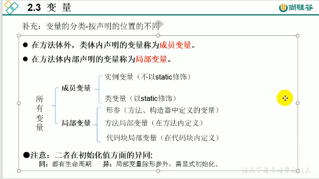 Java类体中的成员变量可以分为实例变量和类变量。其中类变量需用static修饰,
