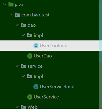 public UserDao userDao; 注:UserDao=UserDao接口。