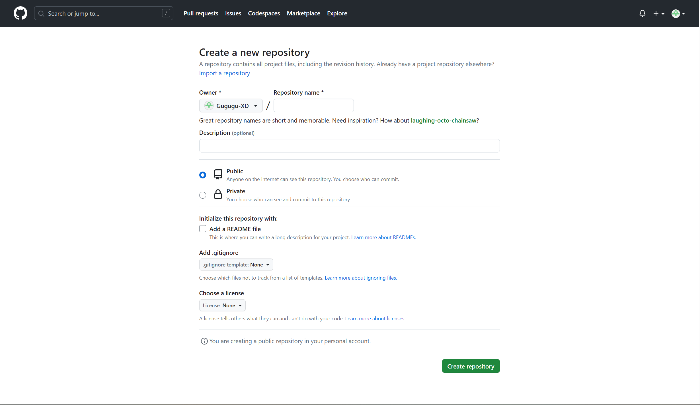 创建完成账号后,可以在GitHub上创建自己的储存库: