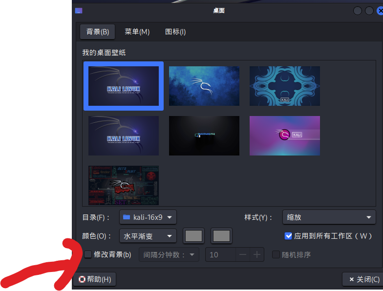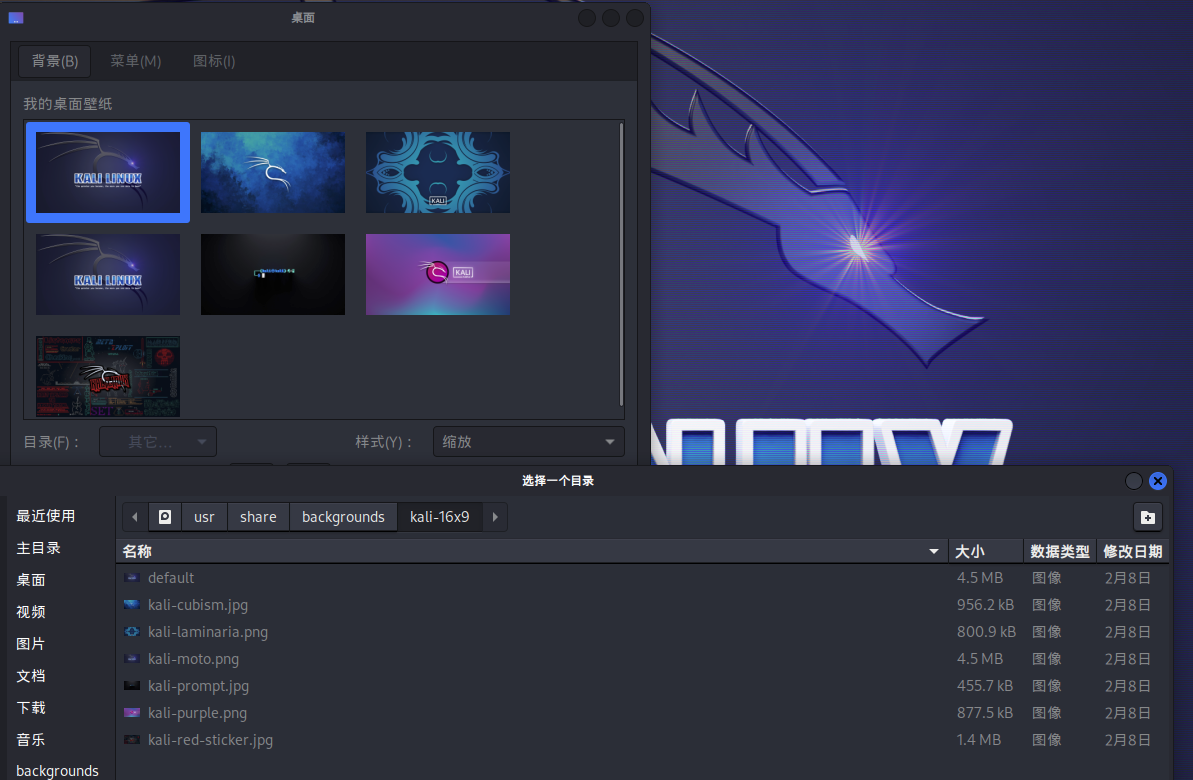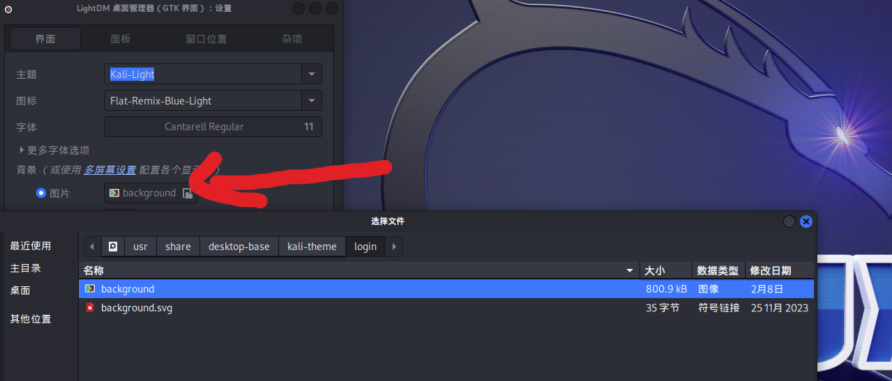 更改桌面背景,只需要在刚才目录下放入自己喜欢的图片,然后选择即可