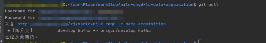 在gitlab新建了一个新的分支的时候,idea检测不到新建的分支,在vcs->git->pull也没更新。 打开terminal窗口,然后输入:git pull命令进行更新