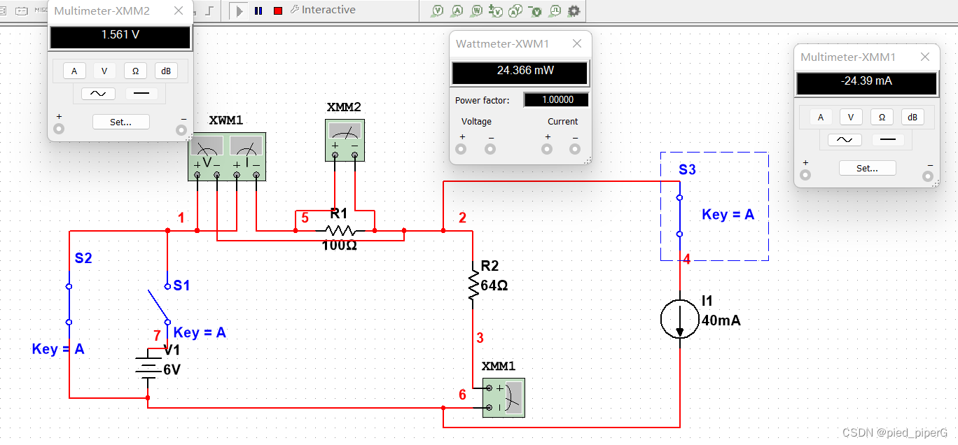 观察此时电压1.561V,电流24.39mA,功率24.366mW
