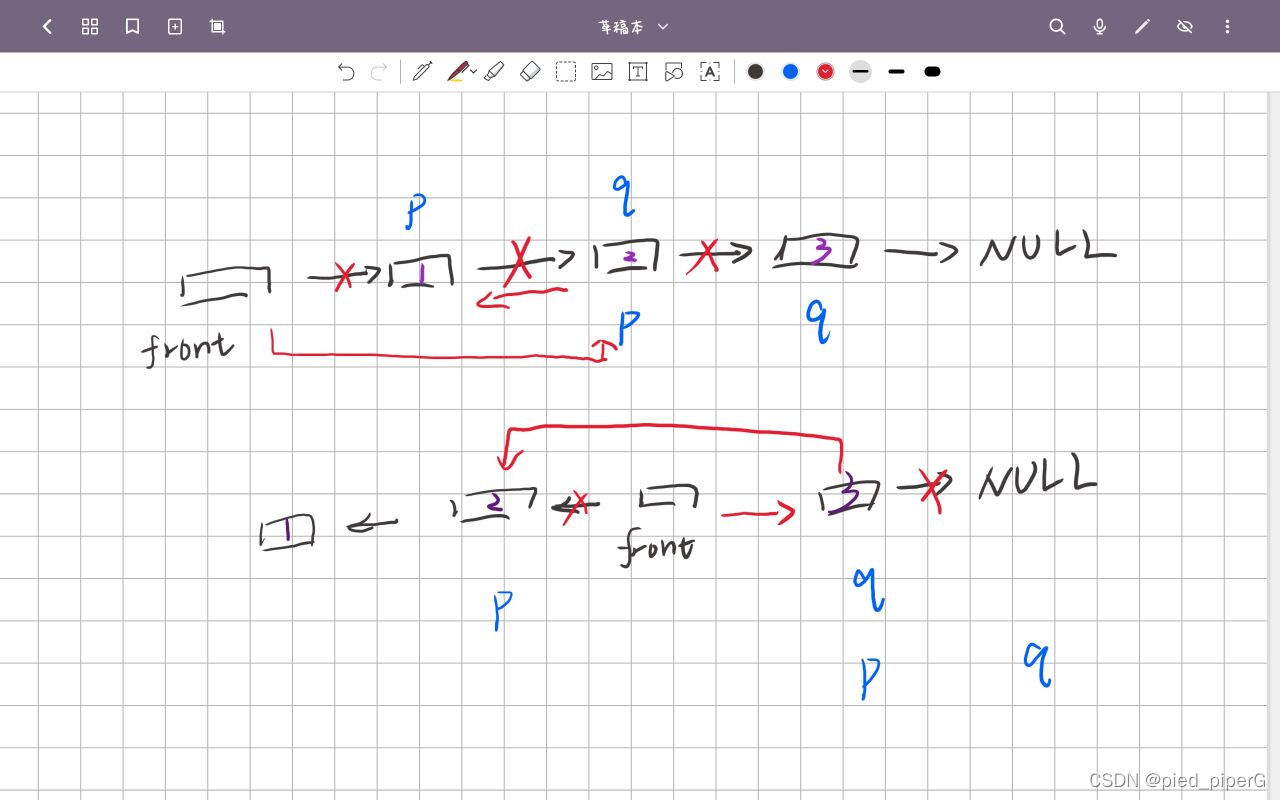 q=p->next;