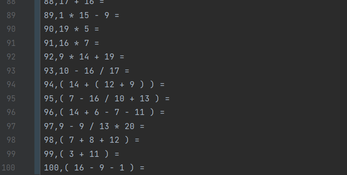 测试结果:生成100道题目,且生成数范围为20以内,且答案正确