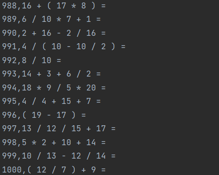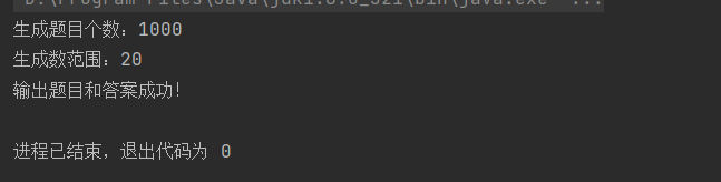 测试结果:生成1000道题目,且生成数范围为20以内,且答案正确