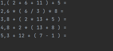 4.括号的处理进行改进。toStringArray...函数中需要对随机生成的外括号去除。但是最初操作单纯是对字符串首尾进行简单的判定。后续发现双括号运算式按照此操作去除外括号后,导致二叉树插入括号造成运行失败。