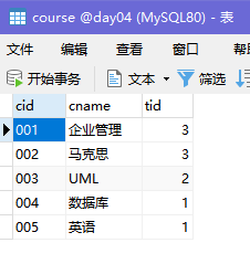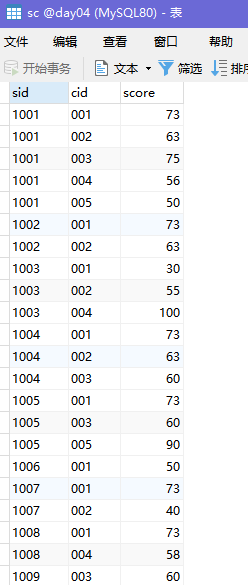 (SELECT cid , sid , score FROM sc WHERE cid = 001) s1,