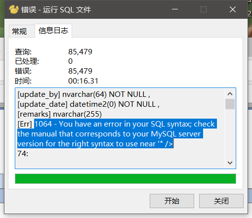 运行navicat.exe时,加载SQL文件后出现